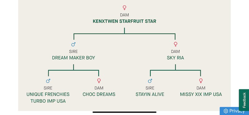 Skye Bleu (Mother) Fawn Merle; KENXTWEN STARFRUIT STAR bloodline
