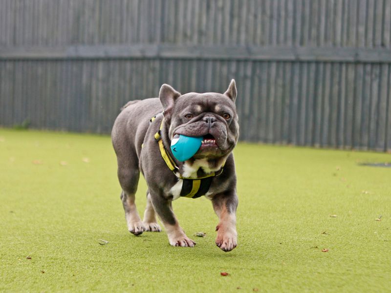 Freddie is our adorable 4 year French Bulldog looking for a wonderful new home. Freddie is a fun character who loves nothing more than hanging out with favourite people. Freddie enjoys meeting dogs out and about and could share his home with a suitable doggie companion, he is however unable to live with cats or other animals. Due to his breed, Freddie needs to take care while exercising, especially during hot weather, he enjoys his outings but is best suited to shorter walks. He could share his home with children over 14 years old. A playful chap, Freddie loves his toys, but can become a little excitable at times, leading to him mouthing, therefor play interactions are best managed in a calm way.