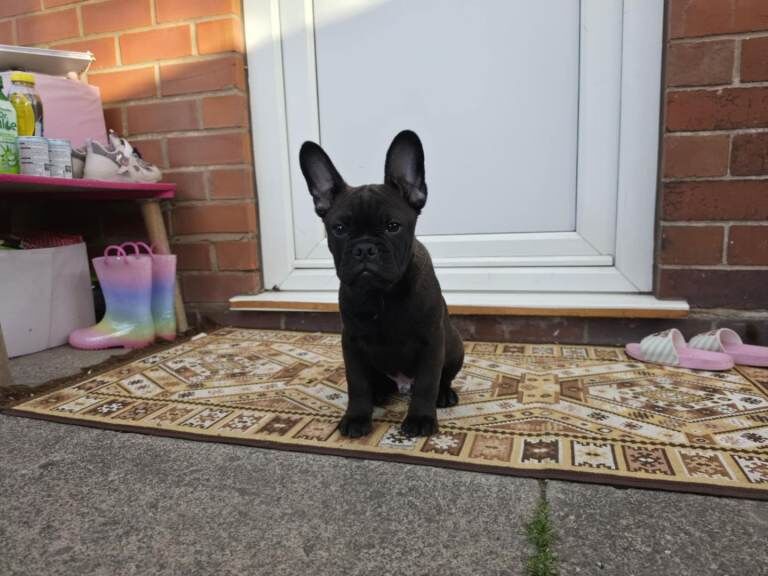 French Bulldog x with pug - 3 months old to re-home to a loving family- preferably with no small kids. Reason of selling is because our 7 years old daughter can't accommodate with him. He has a lot of energy and it's a very smart puppy. We would love to give him to someone who can take care of him.
