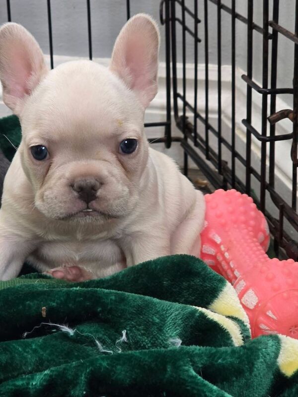 Hi I after sell my French bull dog pup due to no fault of her own but my own work commitments mean I can’t give her the time and attention she needs and deserves she is fully house trained loves to play and loves kids of all ages lives cuddles and going on walks she comes with every thing she needs she is fully vaccinated and chipped good with other dogs and cats £500